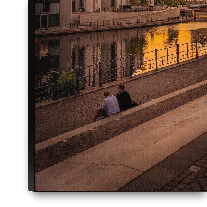 Ihre gewählte Kunst auf Leinwand, gespannt in einem Aluminiumrahmen. Schnell und einfach austauschbar für eine frische Ausstrahlung und ganz nach Ihren Wünschen.
