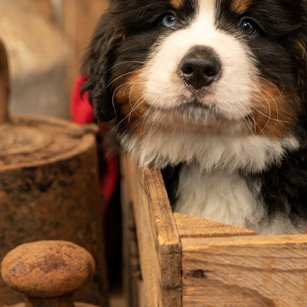 Ein süßer Berner Senny-Welpe namens Garth.