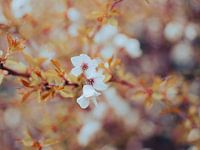 Genieße die sanfte Schönheit blühender Zweige in dieser beruhigenden Nahaufnahme. Die warmen Farbtöne und die subtile Bewegung erwecken eine ruhige, fast traumhafte Atmosphäre zum Leben. Perfekt, um sich kurz zu entspannen, sich zu konzentrieren oder einfach die reine Natur zu genießen. Eine Nahaufnahme eines dünnen Zweigs mit kleinen…