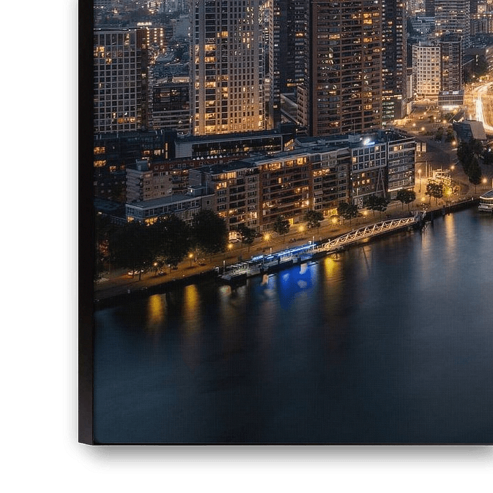 Holen Sie sich die Schönheit von Rotterdam bei Sonnenuntergang in Ihr Zuhause und genießen Sie dieses zeitlose Stadtbild täglich. Lassen Sie Ihrer Fantasie freien Lauf und träumen Sie sich durch die schönen Farben, die das Foto auf subtile und raffinierte Weise malen.