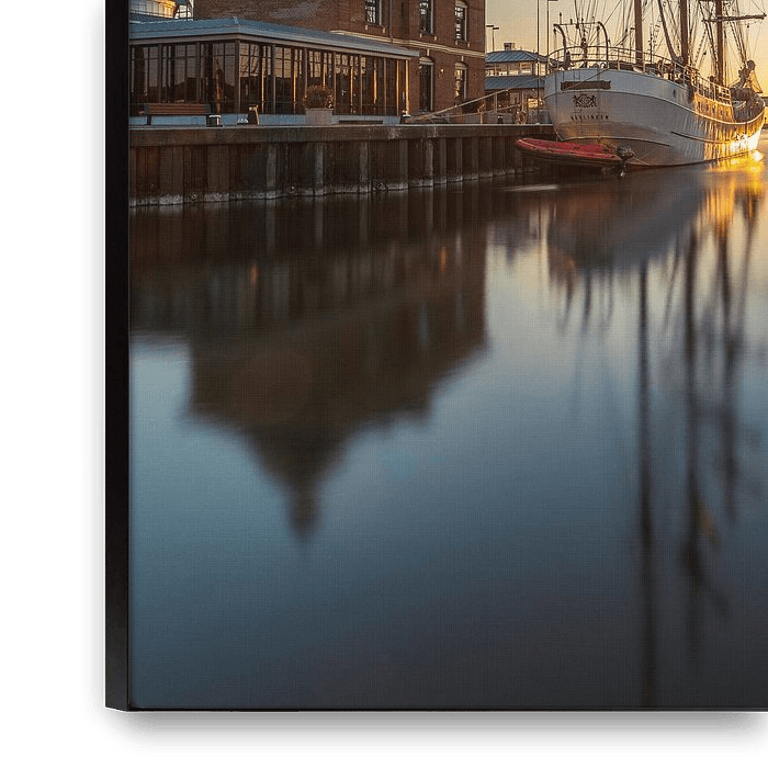 Ihre gewählte Kunst auf Leinwand, gespannt in einem Aluminiumrahmen. Schnell und einfach austauschbar für eine frische Ausstrahlung und ganz nach Ihren Wünschen.