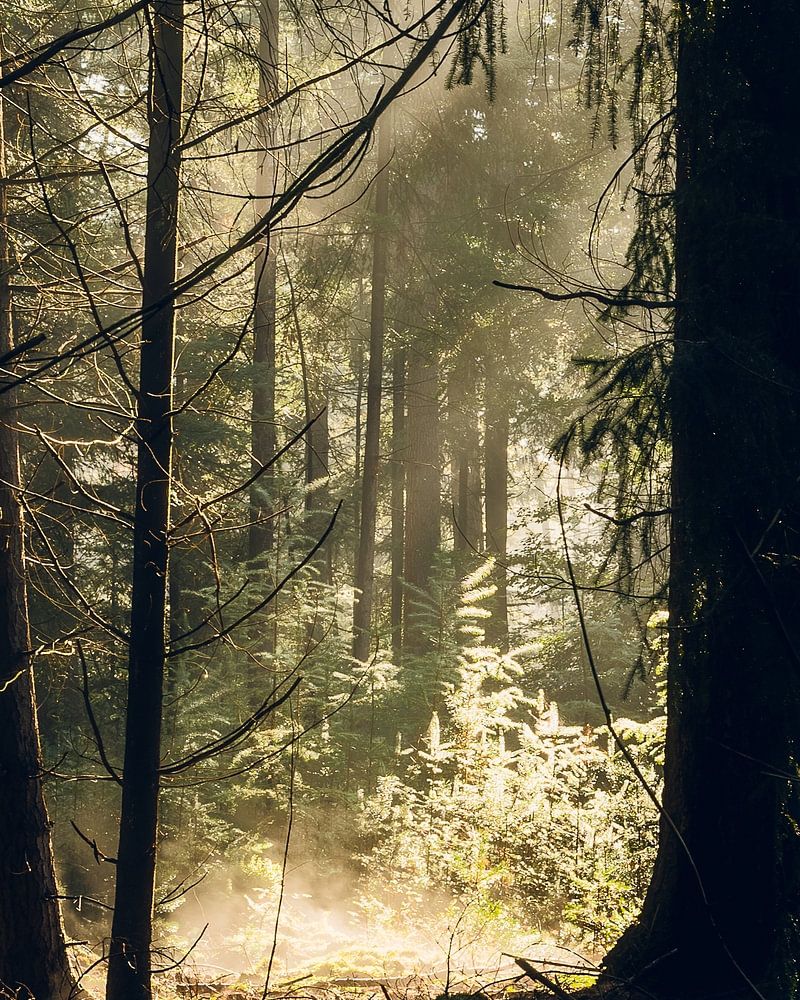 Nach dem regnerischen Wetter war es in den Wäldern des Nationalparks Hoge Veluwe herrlich frisch. Die durchbrechende Sonne ließ die Feuchtigkeit langsam verdampfen und schuf dieses magische Bild.