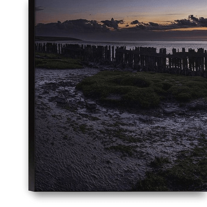 Bestelle dieses Landschafts-Wandbild Bezaubernde Nacht an der friesischen Wattenmeerküste: Leuchtende Nachtwolken über dem Wattenmeer von Hevonax Photography als Reproduktion auf Leinwand, Alu-Dibond, als Poster, Fototapete oder Acrylglasbild.