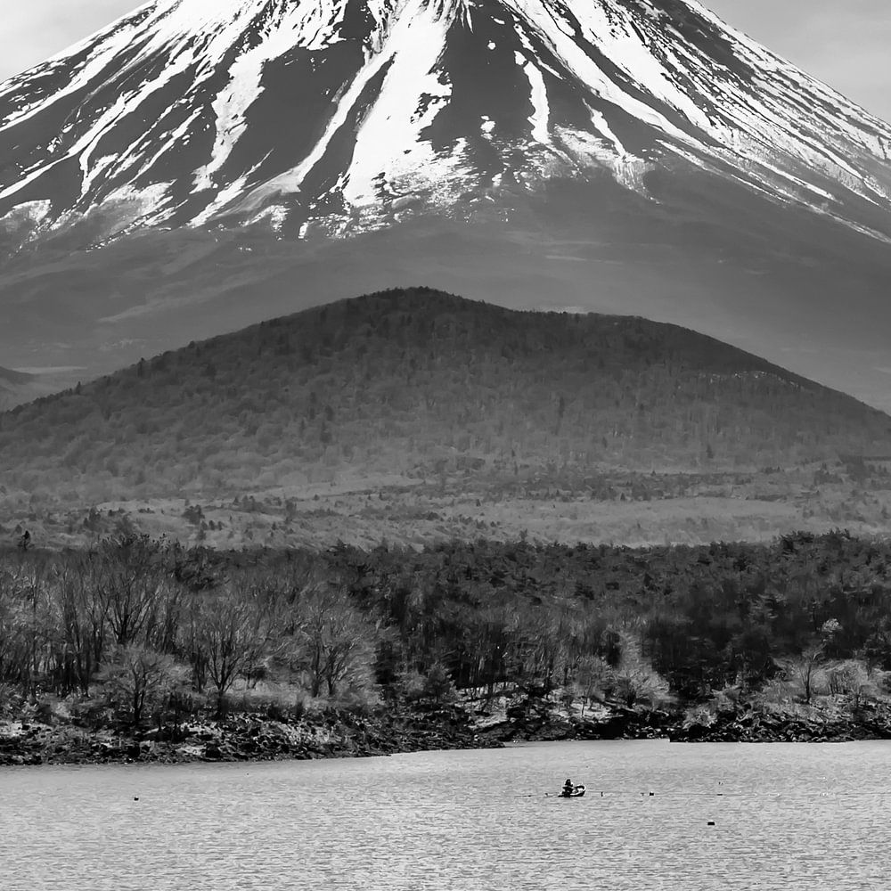 Am Ufer des malerischen Shoji-Sees breitet sich eine friedliche Idylle aus, während sich der majestätische Fuji-san im ruhigen Wasser spiegelt. Entlang des Ufers ruhen Boote friedlich im klaren Wasser, bereit, die Besucher auf eine stille Fahrt über den See mitzunehmen. Dieses bezaubernde Schwarz-Weiß-Bild mit hervorgehobenen leuchtenden Farben, eingebettet in die unberührte Natur und die erhabene Pracht des Fuji, lädt dazu ein, den Moment der stillen Schönheit zu genießen und die Seele baumeln zu lassen.