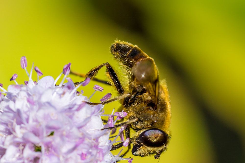 Eine Biene, die den Nektar einer Blume im botanischen Garten in Utrecht verzehrt
