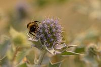 Eine Biene sitzt auf einer Stechpalme in den Dünen