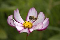 Biene auf einer rosa Kosmosblüte von Amber Timmer
