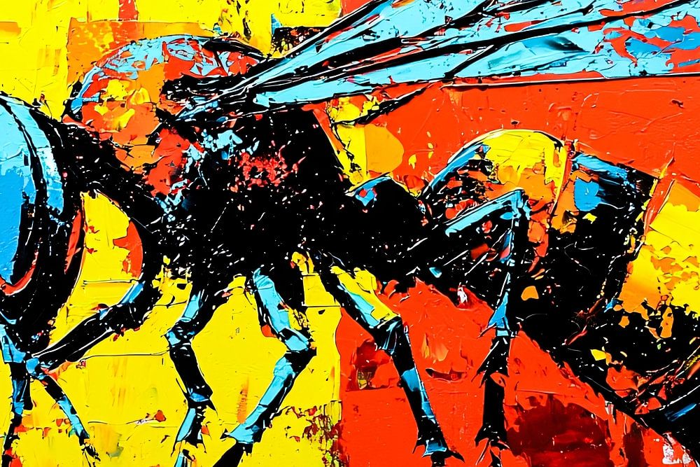 Dieses Kunstwerk bringt Energie und Farbe in jeden Raum. Mit seinen leuchtenden Farben und seinem abstrakten Stil zieht es sofort die Aufmerksamkeit auf sich. Die Kombination aus gelben, roten, blauen und schwarzen Akzenten schafft ein dynamisches und kraftvolles Bild. Perfekt für Liebhaber moderner Kunst oder für jeden, der einen Blickfang an der Wand haben möchte. Geeignet für ein Büro, ein Wohnzimmer oder einen kreativen Raum.
