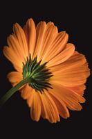 Dieses Fotokunstwerk bietet eine schöne Perspektive auf die Rückseite einer Ringelblume, die die interessanten Details und die Textur der Blume wunderbar zur Geltung bringt. Die leuchtenden Orangetöne sind immer noch sichtbar, aber der Fokus liegt auf den zarten Adern und der weichen Textur der Blütenblätter. Das Licht akzentuiert die…