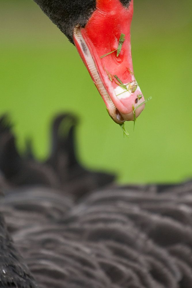 zwarte zwaan, zwaan, vogel, watervogel, Cygnus atratus, zwart, groen, rood, snavel, mooi, veren, close-up,
