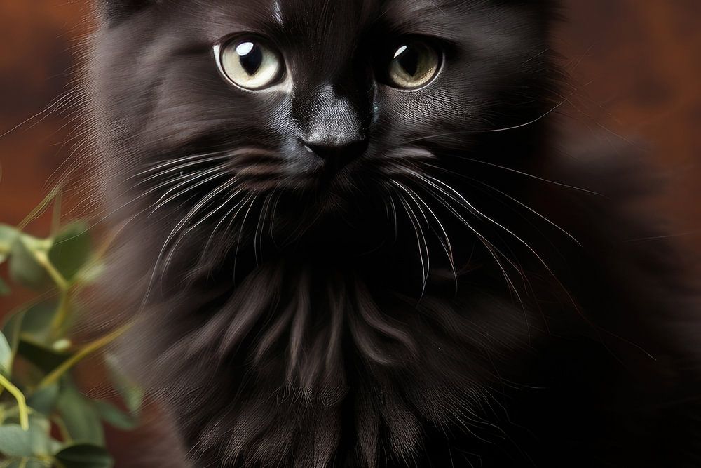 Whimsical cat and flowers inspired by Vincent van Gogh. Yellow flowers and beautiful black cat sitting on a wooden table. Funny animals, furry pets. Fine art oil painting.black cat, funny animals, furry pets, kitten, flowers, colorful flora, floral, oil painting, fine art, digital art