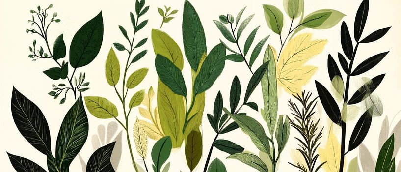 Bestelle dieses Blumen-Wandbild Blätter Vielfalt von Poster Art Shop als Reproduktion auf Leinwand, Alu-Dibond, als Poster, Fototapete oder Acrylglasbild.