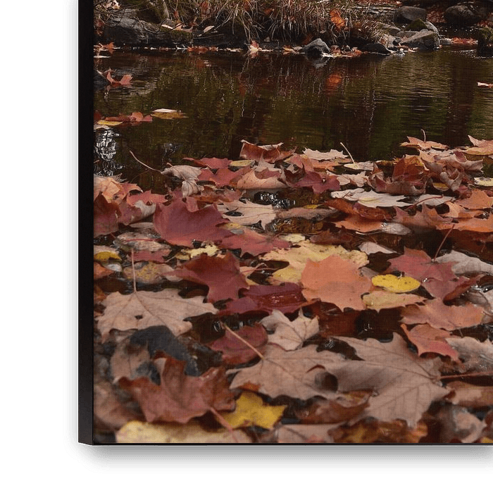 Blätter im Bach im Herbst, Saint-Damase, Quebec, Kanada