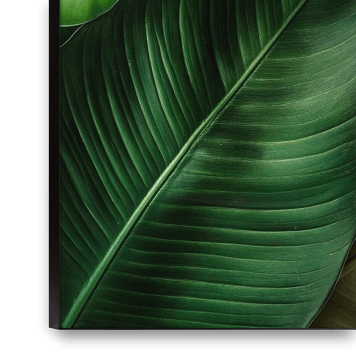 Ein üppiges Blättermeer entfaltet sich, das mit verschiedenen Grüntönen spielt – von tiefem Waldgrün bis zu sanften, hellen Akzenten. Die sanften Kurven und eleganten Adern der Blätter schaffen eine harmonische Textur, die den Betrachter in die erfrischende Ruhe der Natur entführt. Ein perfektes Zusammenspiel aus Leben und Ruhe.