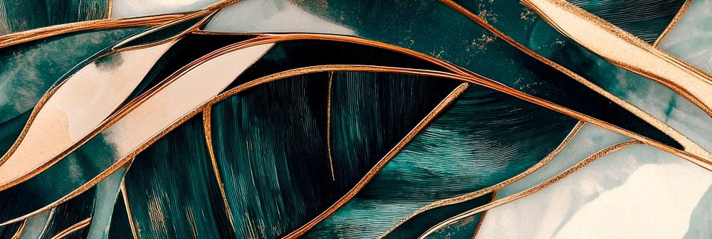 Im Spiel von satten, tiefgrünen Blättern und eleganten, goldenen Linien entfaltet sich eine harmonische Komposition. Die geschwungenen Formen wirken lebendig und verleihen dem Arrangement eine erstaunliche Dynamik. Der zarte Kontrast zur sanften, hellen Fläche lässt das Gesamtbild erstrahlen und lädt zum Träumen und Verweilen ein.
