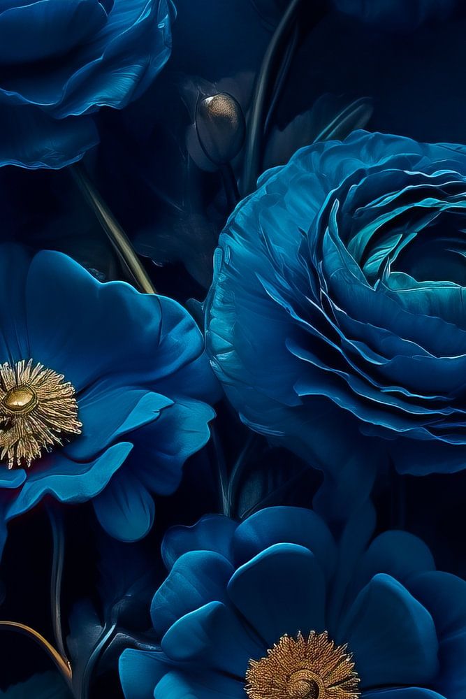 Blaue blühende Blumen auf einem dunklen Hintergrund.