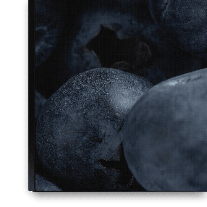 Entdecken Sie die schöne Farbe und Textur der Heidelbeere. Fotografiert, damit es besonders dramatisch aussieht. Dieses hier hängt in meiner Küche!