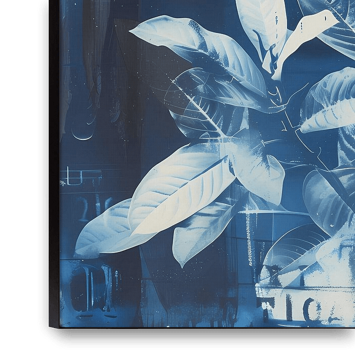 Bestelle dieses Blumen-Wandbild Blaue Cyanotypie Silhouette Pflanze von Ariadna de Raadt-Goldberg als Reproduktion auf Leinwand, Alu-Dibond, als Poster, Fototapete oder Acrylglasbild.