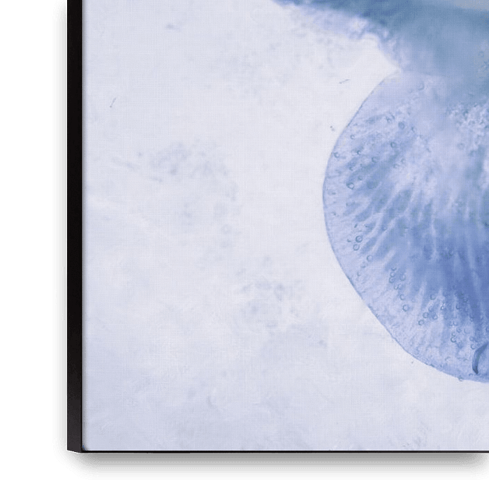 Bestelle dieses Blumen-Wandbild Blaue Freesien in Eis 1 von Marc Heiligenstein als Reproduktion auf Leinwand, Alu-Dibond, als Poster, Fototapete oder Acrylglasbild.