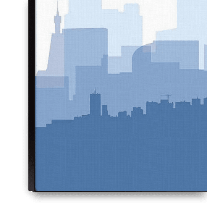 Bestelle dieses abstrakte Wandbild Blaue Stadt von Harry Hadders Design als Reproduktion auf Leinwand, Alu-Dibond, als Poster, Fototapete oder Acrylglasbild.