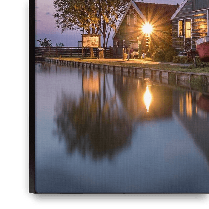 Bestelle dieses moderne Wandbild Blaue Stunde am Zaanse Schans bei Cheese Farm Catharinahoeve von Ardi Mulder als Reproduktion auf Leinwand, Alu-Dibond, als Poster, Fototapete oder Acrylglasbild.