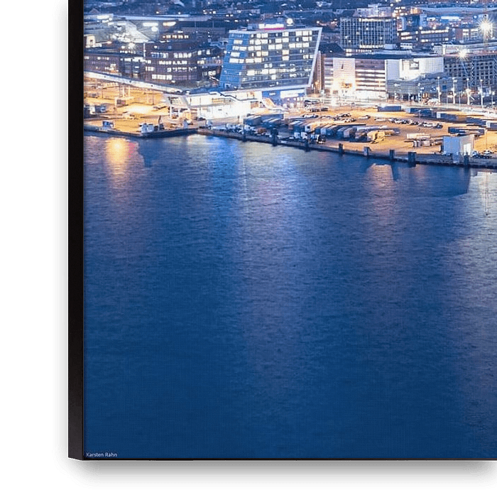 Bestelle das Foto Blaue Stunde über Kiel von Karsten Rahn als Reproduktion auf Leinwand, Alu-Dibond, als Poster, Fototapete oder Acrylglasbild.