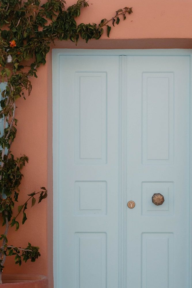 Fast alle Häuser im Dorf Oia auf Santorin sind weiß mit blauen Details. Dieses Gebäude ist orange und hebt sich dadurch stark von den anderen ab. Hier würde ich gerne leben!