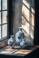 Bestelle dieses Stilleben Blaue Vasen am Fenster von Poster Art Shop als Kunstdruck auf Leinwand, Alu-Dibond, als Poster, Fototapete oder Acrylglasbild.