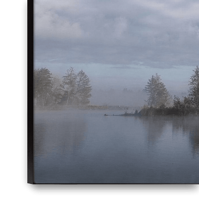 Bestelle das Foto Blauer Himmel, Wolken und Nebelreste an einem Tag Ende Oktober bei den Schwackenreuter Seen - Mühlingen von BlattArt - Christine Horn als Reproduktion auf Leinwand, Alu-Dibond, als Poster, Fototapete oder Acrylglasbild.