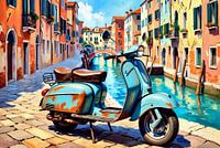 Bestelle das digitale Kunst Bild Blauer Motorroller in Venedig von DeVerviersBelgium als Reproduktion auf Leinwand, Alu-Dibond, als Poster, Fototapete oder Acrylglasbild.
