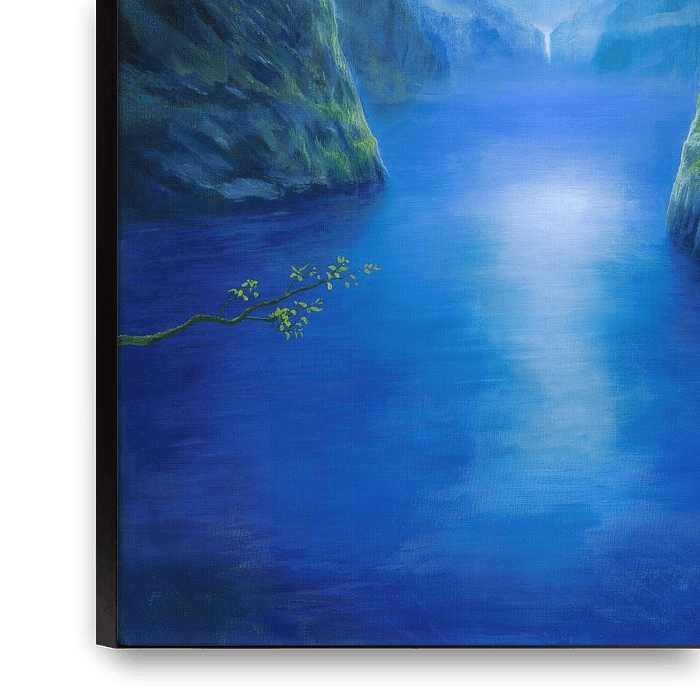 Bestelle diese Malerei Blaues Tal von Art Demo als Reproduktion auf Leinwand, Alu-Dibond, als Poster, Fototapete oder Acrylglasbild.