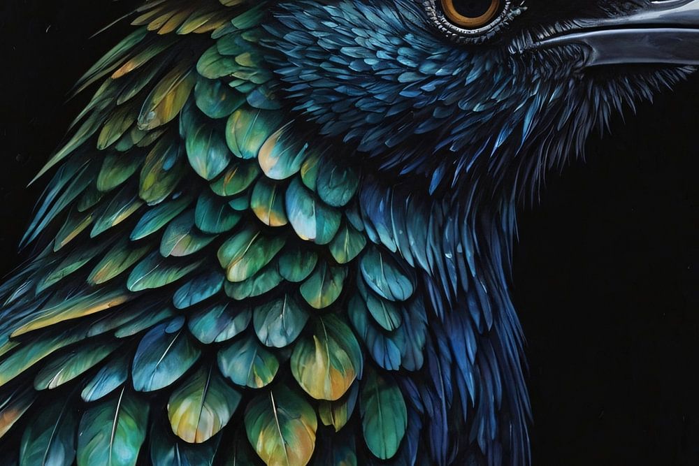 Entdecken Sie mit diesem modernen Kunstwerk, in dem die majestätische Schönheit der Natur auf dynamische und farbenfrohe Weise zum Leben erwacht, eine atemberaubende Darbietung von Handwerkskunst. Jedes Detail der gefiederten Schönheit ist mit akribischer Präzision eingefangen, während die leuchtenden Farben und Schatten zu einem fast hypnotischen Effekt verschmelzen, der den Betrachter zu tieferer Kontemplation einlädt. Der faszinierende Blick des Tieres verleiht ihm eine geheimnisvolle Note und hinterlässt in jedem Raum, in dem es ausgestellt wird, einen unauslöschlichen Eindruck. Dieses Kunstwerk, das sich sowohl für das moderne Wohnzimmer als auch für ein professionelles Büro eignet, strahlt zeitlose Eleganz aus und ist eine wunderbare Ergänzung für jede Sammlung.