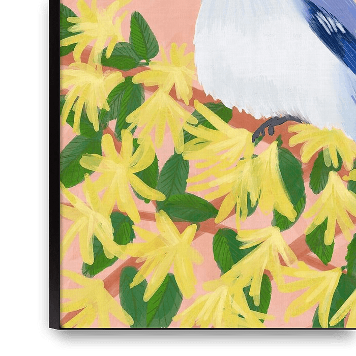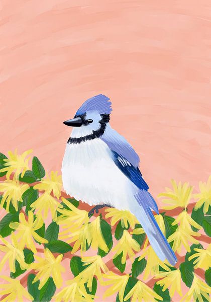 Bestelle dieses Blumen-Wandbild Blauhäher Vogel von Aliya Putrus als Reproduktion auf Leinwand, Alu-Dibond, als Poster, Fototapete oder Acrylglasbild.