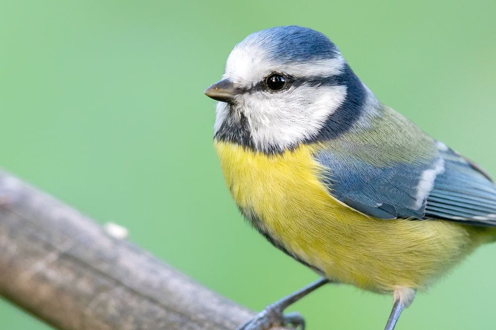 Blaumeise (Cyanistes caeruleus) sitzt auf einem Ast.