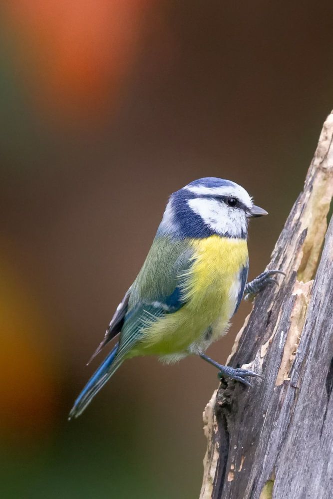 Blaumeise (Cyanistes caeruleus) im Herbst.