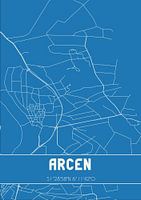 Blaupause der Karte / Karte der niederländischen Stadt Arcen, gelegen in der Gemeinde Venlo, Provinz Limburg. Die Karte enthält alle öffentlichen Straßen und die Koordinaten des Zentrums von Arcen.