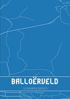 Blaupause der Karte / Karte der niederländischen Stadt Balloërveld, gelegen in der Gemeinde Aa en Hunze, Provinz Drenthe. Die Karte enthält alle öffentlichen Straßen und die Koordinaten des Zentrums von Balloërveld.