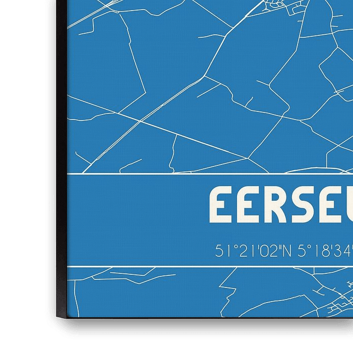 Blaupause der Karte / Karte der niederländischen Stadt Eersel, gelegen in der Gemeinde Eersel, Provinz Nordbrabant. Die Karte enthält alle öffentlichen Straßen und die Koordinaten des Zentrums von Eersel.