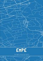 Blaupause der Karte / Karte der niederländischen Stadt Empe, gelegen in der Gemeinde Brummen, Provinz Gelderland. Die Karte enthält alle öffentlichen Straßen und die Koordinaten des Zentrums von Empe.