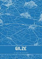 Blaupause der Karte / Karte der niederländischen Stadt Gilze, gelegen in der Gemeinde Gilze en Rijen, Provinz Nordbrabant. Die Karte enthält alle öffentlichen Straßen und die Koordinaten des Zentrums von Gilze.