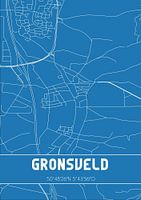 Blaupause der Karte / Karte der niederländischen Stadt Gronsveld, gelegen in der Gemeinde Eijsden-Margraten, Provinz Limburg. Die Karte enthält alle öffentlichen Straßen und die Koordinaten des Zentrums von Gronsveld.