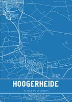 Blaupause der Karte / Karte der niederländischen Stadt Hoogerheide, gelegen in der Gemeinde Woensdrecht, Provinz Nordbrabant. Die Karte enthält alle öffentlichen Straßen und die Koordinaten des Zentrums von Hoogerheide.