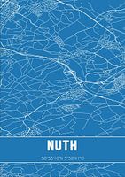 Blaupause der Karte / Karte der niederländischen Stadt Nuth, in der Gemeinde Beekdaelen, Provinz Limburg. Die Karte enthält alle öffentlichen Straßen und die Koordinaten des Zentrums von Nuth.
