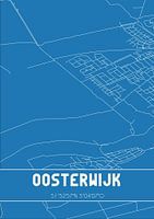 Blaupause der Karte / Karte der niederländischen Stadt Oosterwijk, gelegen in der Gemeinde Vijfheerenlanden, Provinz Utrecht. Die Karte enthält alle öffentlichen Straßen und die Koordinaten des Zentrums von Oosterwijk.