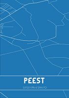 Blaupause der Karte / Karte der niederländischen Stadt Peest, gelegen in der Gemeinde Noordenveld, Provinz Drenthe. Die Karte enthält alle öffentlichen Straßen und die Koordinaten des Zentrums von Peest.
