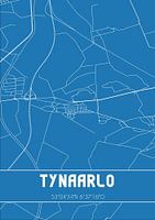 Blaupause der Karte / Karte der niederländischen Stadt Tynaarlo, gelegen in der Gemeinde Tynaarlo, Provinz Drenthe. Die Karte enthält alle öffentlichen Straßen und die Koordinaten des Zentrums von Tynaarlo.