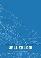 Blaupause der Karte / Karte der niederländischen Stadt Wellerlooi, gelegen in der Gemeinde Bergen(L.), Provinz Limburg. Die Karte enthält alle öffentlichen Straßen und die Koordinaten des Zentrums von Wellerlooi.