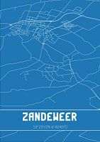 Blaupause der Karte / Karte der niederländischen Stadt Zandeweer, gelegen in der Gemeinde Het Hogeland, Provinz Groningen. Die Karte enthält alle öffentlichen Straßen und die Koordinaten des Zentrums von Zandeweer.