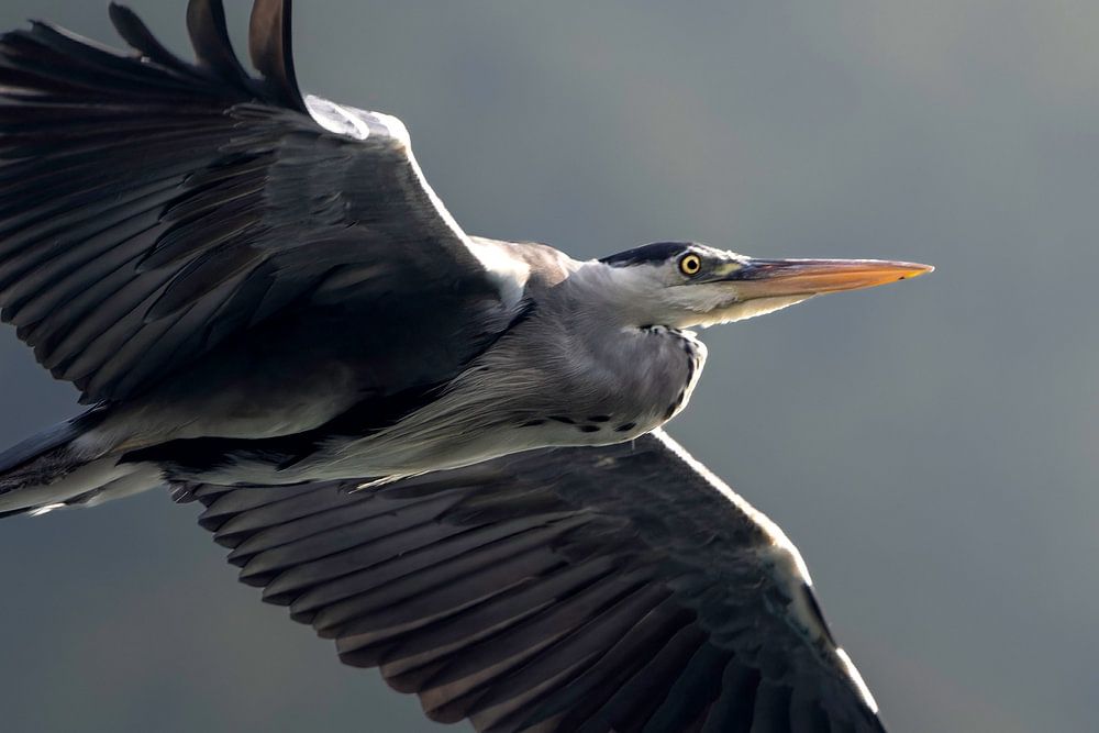 Dieser Graureiher flog mit seinem Partner direkt über dem Luganersee. Die beeindruckende Flügelspannweite ist auf diesem Foto deutlich zu erkennen.