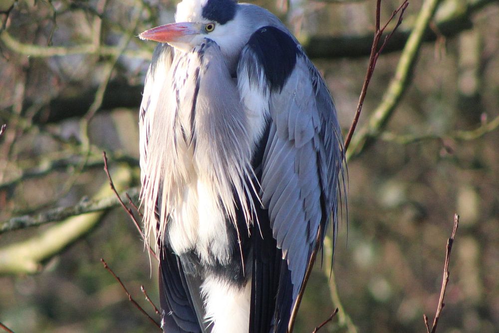 Graureiher auf einem Ast ruhend, schönes Foto, das ich bei einem Morgenspaziergang in Nordholland machen konnte.